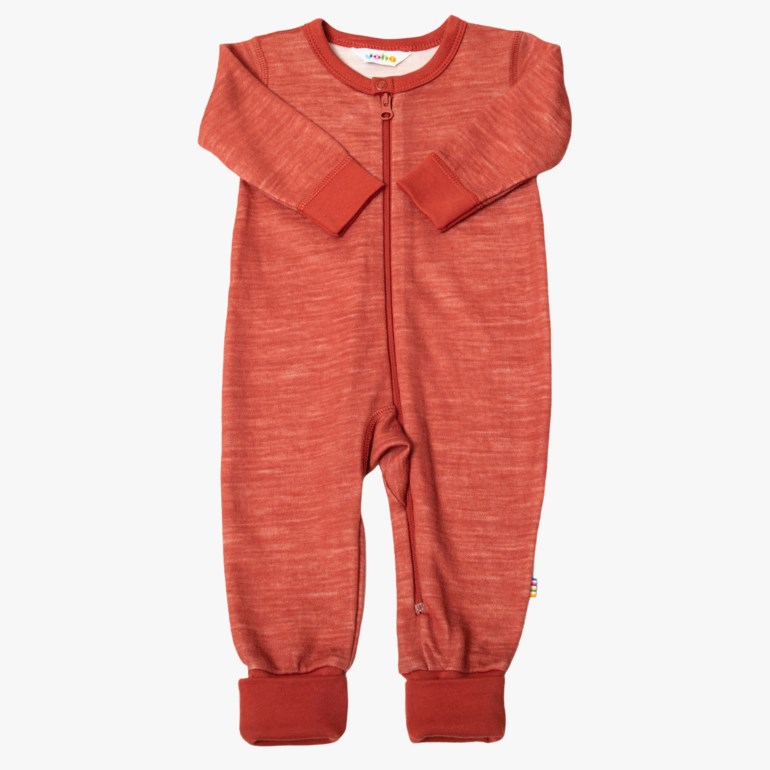 Heldress med 2 i 1 fot. Lukkes med trykknapp og glidelås som går ned langs det ene benet for enklere av/på kledning. En deilig myk og elastisk kvalitet, hvor ullens unike egenskaper er på utsiden og myk økologisk bambus på innsiden. Spesielt egnet for svært sensitiv hud. Ensfarget. Ullrik blanding og Oeko-tex 100-merket. 52% ull, basert på 45% bambus, 4% polyamid.