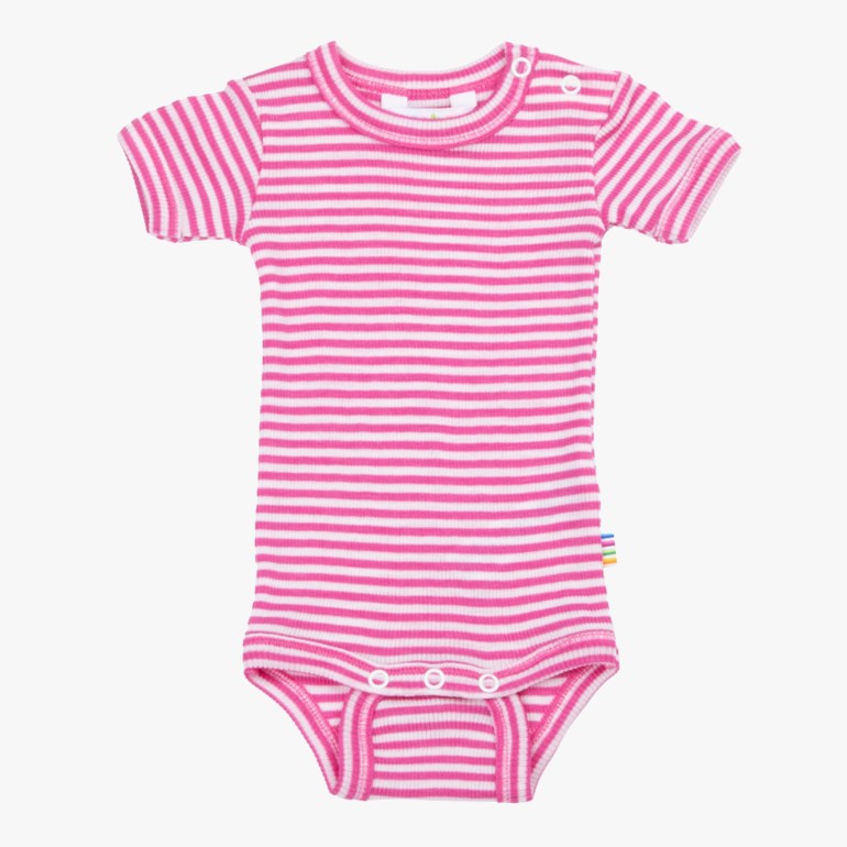 Denne kortermede bodyen er laget av en eksklusiv blanding av ull og silke, noe som gir en myk og lett følelse mot huden. Stoffet har en naturlig glans og sørger for temperaturregulering året rundt. Trykknapper på skulderen og mellom bena gjør påkledningen enkel.