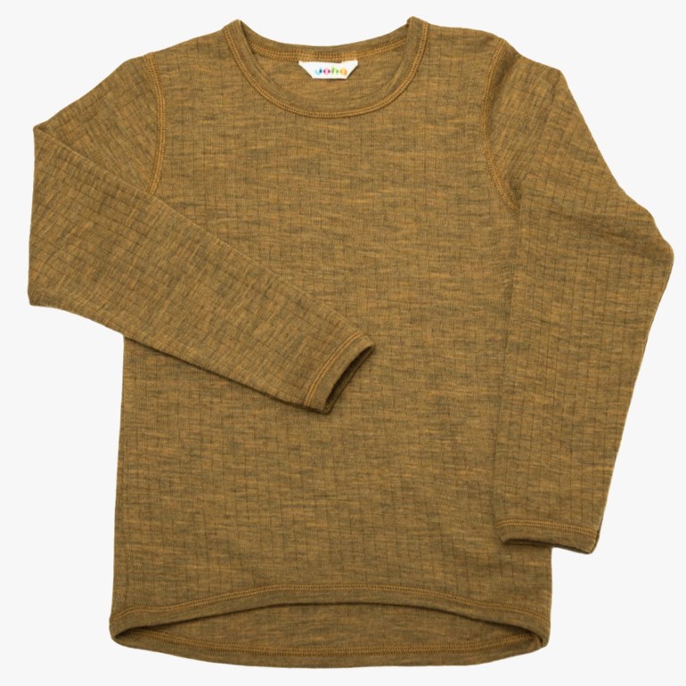Bluse med lange ermer. Virkelig en myk og lett ullkvalitet med et vertikalt sporemønster som er fint og behagelig å ha på seg. Ensfarget. Ren merinoull og merket Oeko-tex 100.