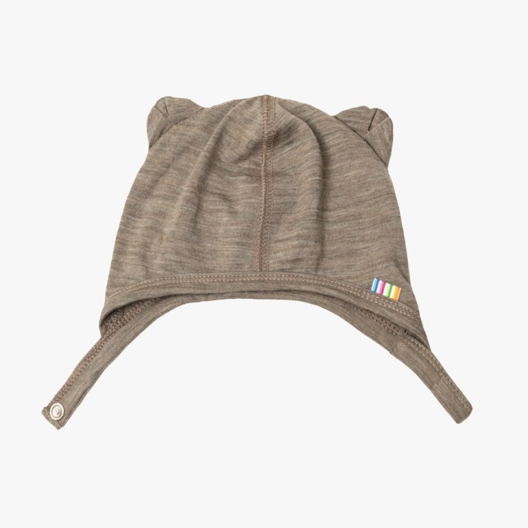 Praktisk lue med trykknapp under haken i enkelt lag, perfekt som en overgangslue for de minste. Luen har god passform og er laget i en fin, glatt og elastisk ullkvalitet som er deilig og myk og behagelig å ha på. Søte ører på toppen er en ekstra hyggelig detalj.