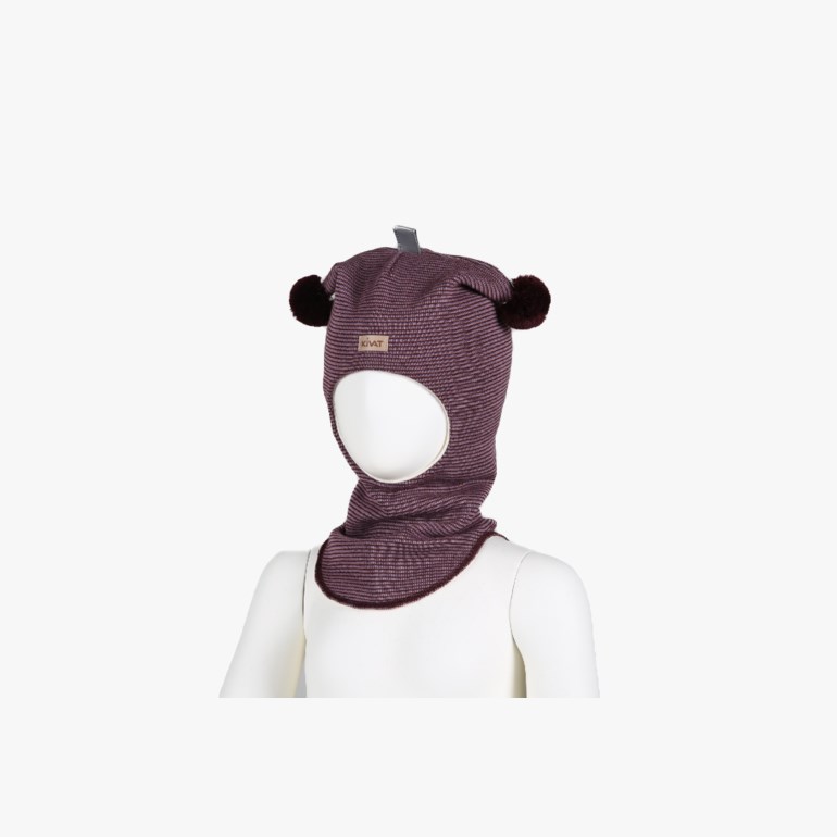 Kivat hettelue med to dusker i ren ny ull med vindstopper, foret med ubleket økologisk bomull - stripete 1G = 1år 2G = 2-4år 3G = 5-10år