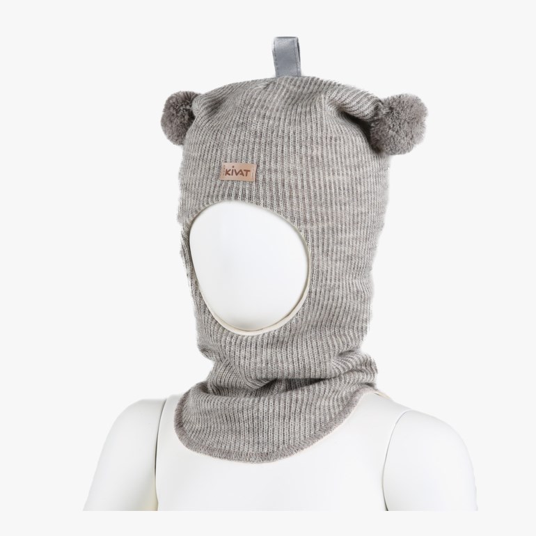 Fin balaclava i ull fra Kivat. Luen kommer med ribbmønster, to søte dusker, den har fôr i økologisk bomull og vindstopper, slik at den passer godt til bruk i mellomsesonger og vinter. Klassisk logo i pannen og en hempe i toppen med refleks og mulighet for å henge opp luen ved behov.