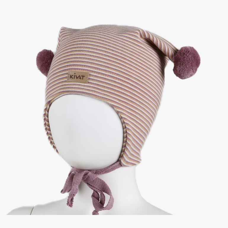 Kivat knytelue i økologisk bomull med vindstopper, smalstripete med KIVAT logo.