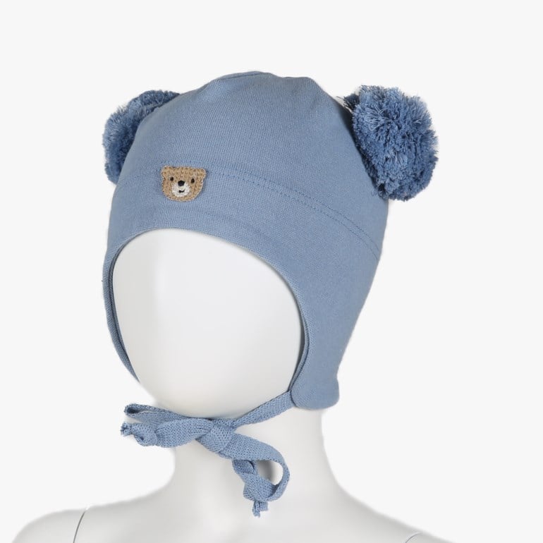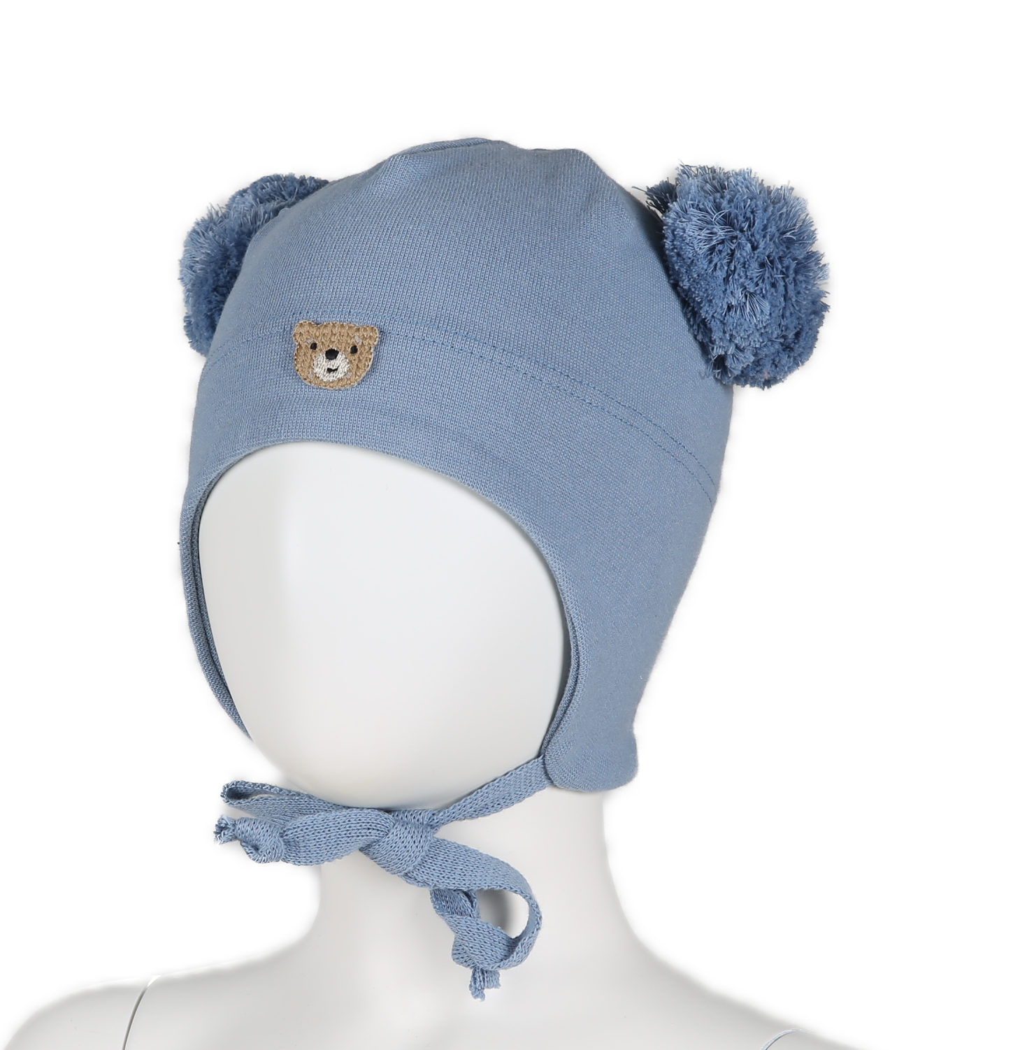 Vindstopper over ørene beskytter effektivt mot kald vind på kjølige vår- og høstdager. De store duskene og den søte bamsedetaljen gir luen et sjarmerende uttrykk som kombinerer funksjon og design. En komfortabel og lun bomullslue som passer perfekt i overgangssesongene.