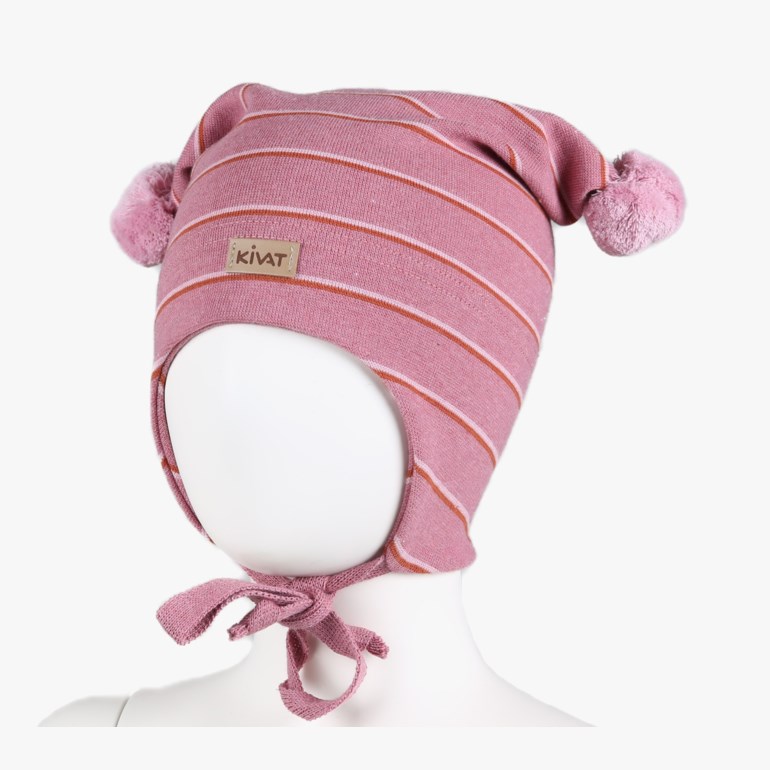 Kivat knytelue i økologisk bomull med vindstopper, smalstripete med KIVAT logo.