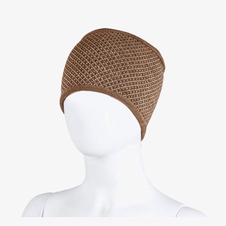 Kivat ullpannebånd i tradisjonelt mønster fôret med økologisk bomull og med vindstopper.