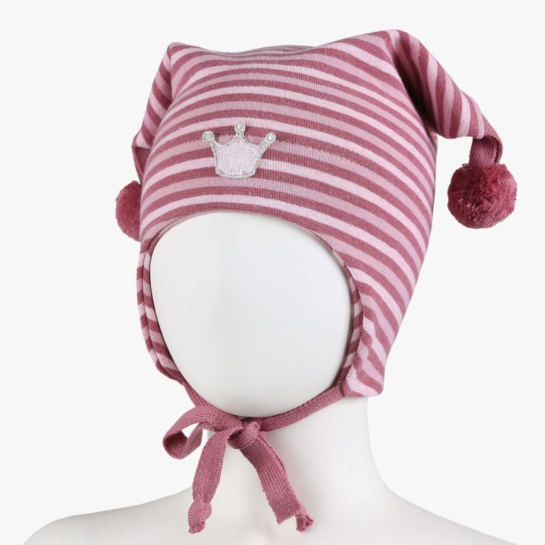 Kivat knyttelue med vindstopper i myk økologisk bomull. Str: 0 = 6mnd 1 = 1 year 2 = 2-4 years