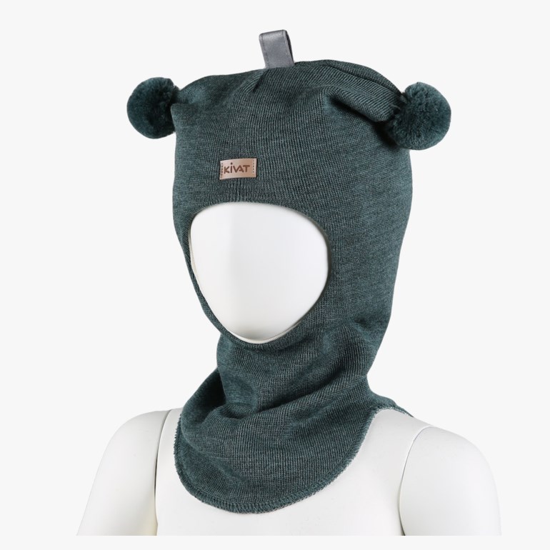 Kivat ullbalaclava med dusker er laget for å gi barn varme, komfort og trygghet i kaldt vær. Den har et ytterlag i 100 % ull som gir naturlig isolasjon og holder godt på varmen, mens innsiden har et mykt fôr i økologisk bomull med litt elastan for en behagelig og fleksibel passform.
