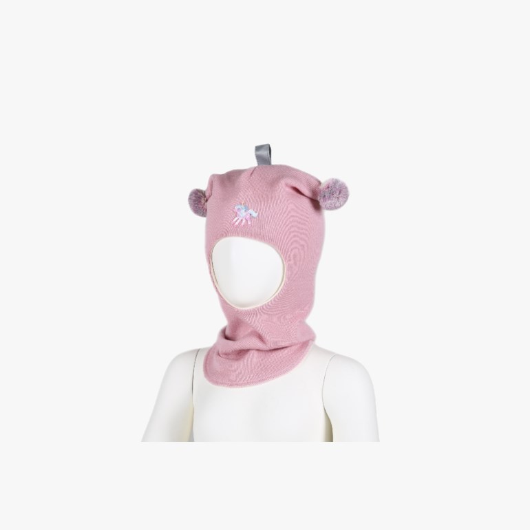 Kivat balaclava fôret med økologisk bomull og vindstopper rundt ørene. Søtt enhjørning bilde som en søt detalje.