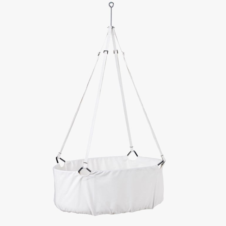 - Materiale: Ramme av stål og vuggeposen er i 100% økologisk bomull.