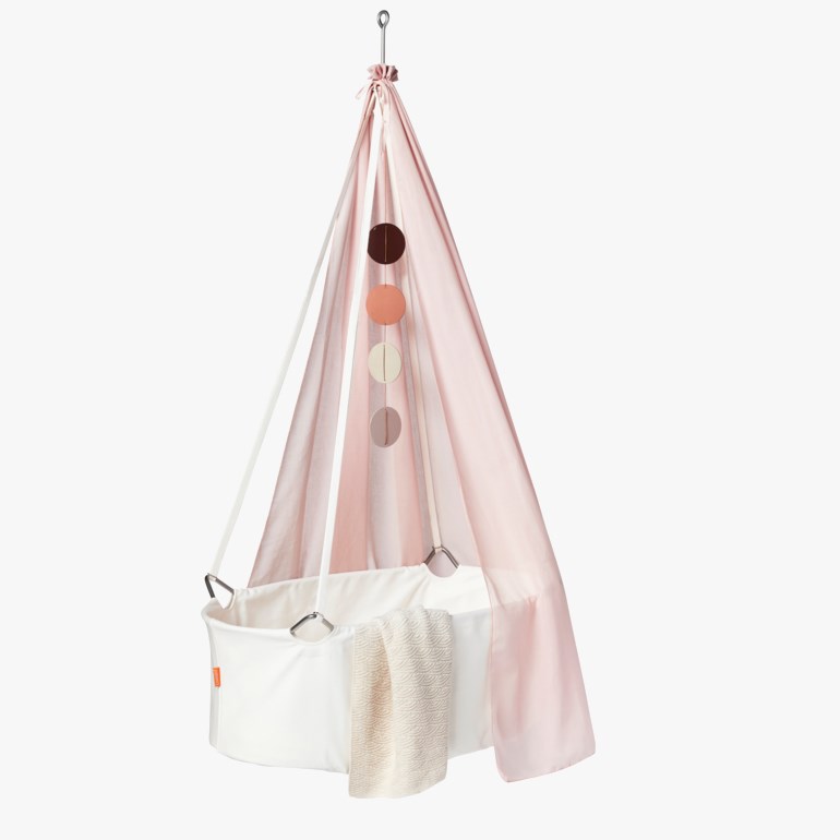 Himmel til Classic vugge. Den lette og milde himmelen rammer inn Leander Classic ™ vuggen og gir samtidig en beskyttende hule for barnet. Himmelen fremhever det estetiske elementet i holderen - både med eller uten stativstativ.
