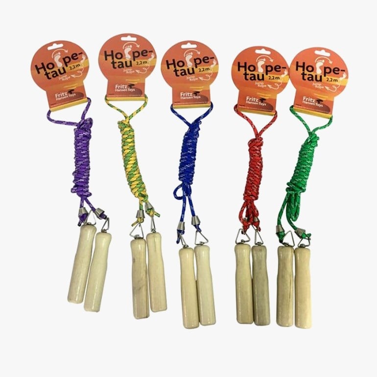 Dette hoppetauet har solide trehåndtak og en lengde på 2,5 meter, perfekt for lek og trening. Hoppetau gir både god mosjon og mye glede for både barn og voksne.