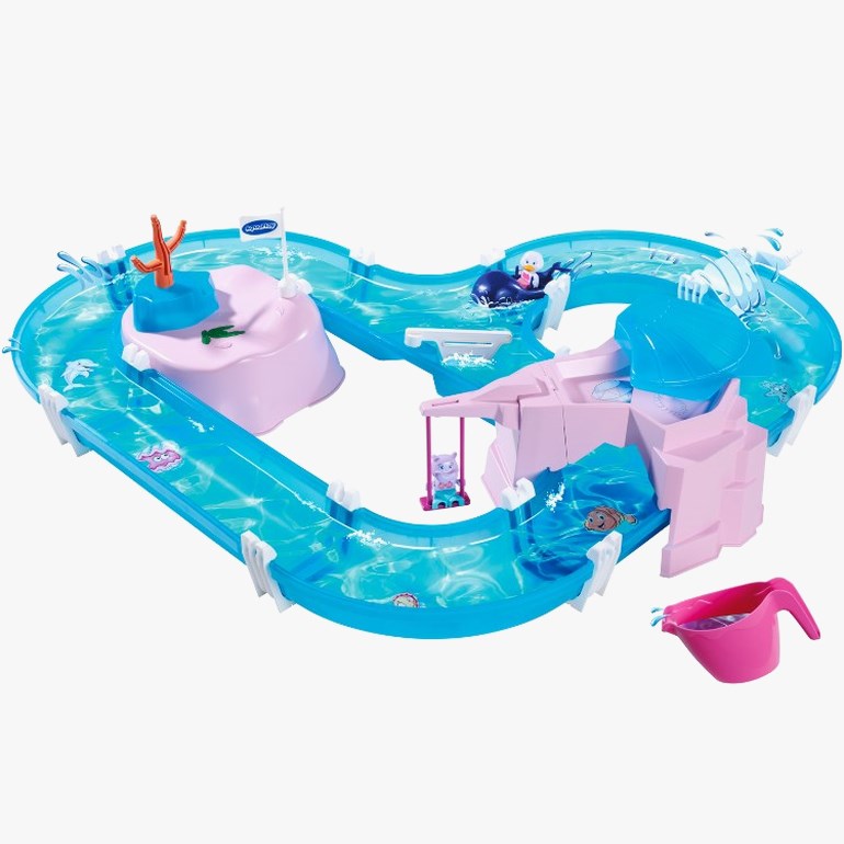 AquaPlay Mermaid lekesett er en fargerik vannbane i rosa og blått, designet for timevis med moro og læring. Settet inkluderer to figurer, en vannkanne og en hvalfigur som kan navigere i det spennende kanalsystemet. Med berg, en huske, vannhjul og klistremerker til bunnen, skaper dette settet et magisk eventyrunivers.