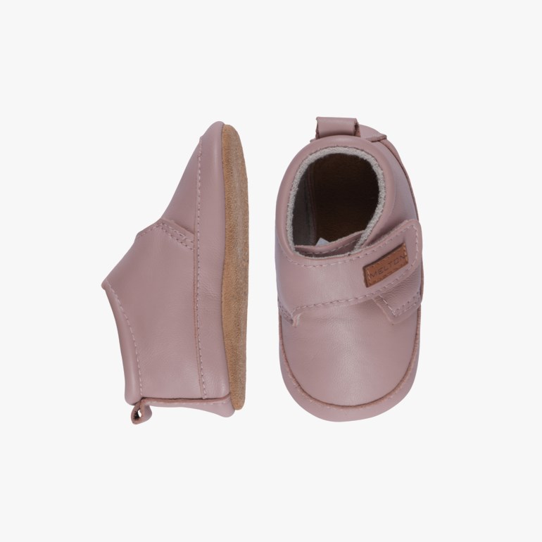Melton skinntøfler er laget for små føtter i bevegelse. Den myke overdelen i skinn og den fleksible sålen i semsket skinn gir både komfort og godt grep på glatte underlag. Tøflene følger barnets bevegelser og gir føttene god kontakt med gulvet – noe som støtter naturlig utvikling og balanse.