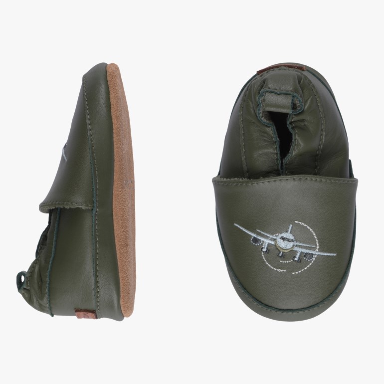 Søt skinntøffel med frottéfôr, semsket skinnsåle og de fineste detaljene på toppen. Den praktiske elastiske kanten holder skoen på plass og gir komfort for den lille.