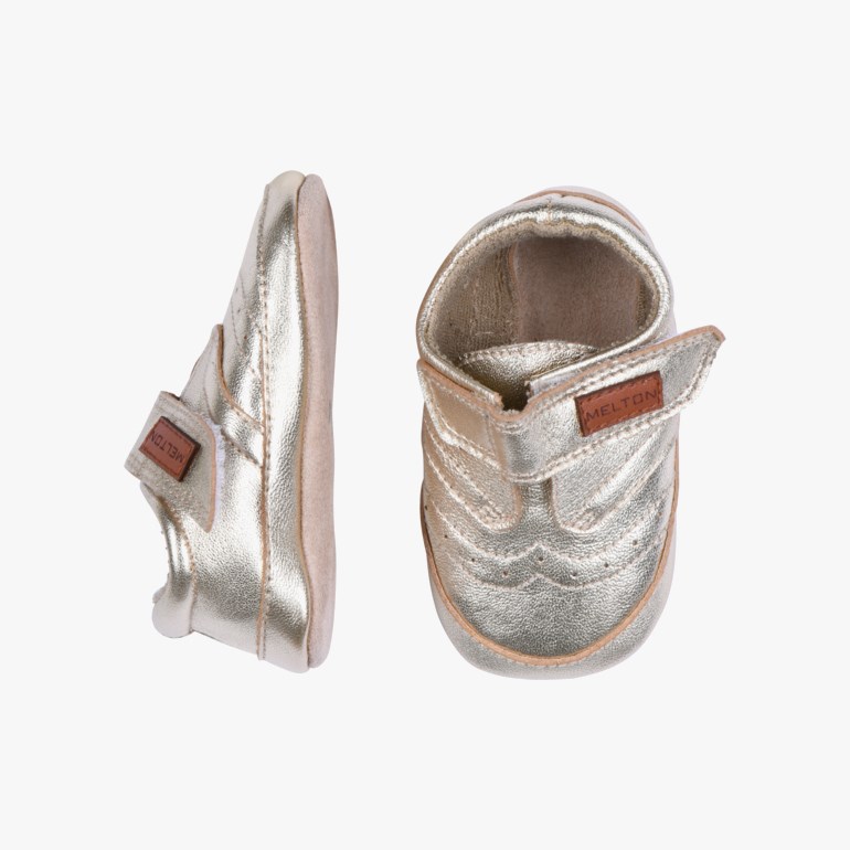 Melton skinntøffel med borrelås som gjør den enkel å få på. Innside foret med bomull, skinnsåle under.