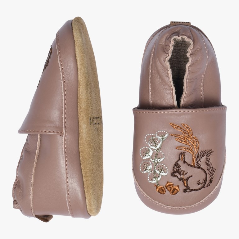 Nydelige skinntøfler fra MELTON. Disse tøflene er laget av 100 % skinn og foret med 100 % myk og slitesterk bomull. De er pyntet med et dekorativt og søtt høstbroderi. Disse tøflene er det perfekte tilbehøret til ethvert antrekk. Innersålen til tøffelen er avtagbar.
