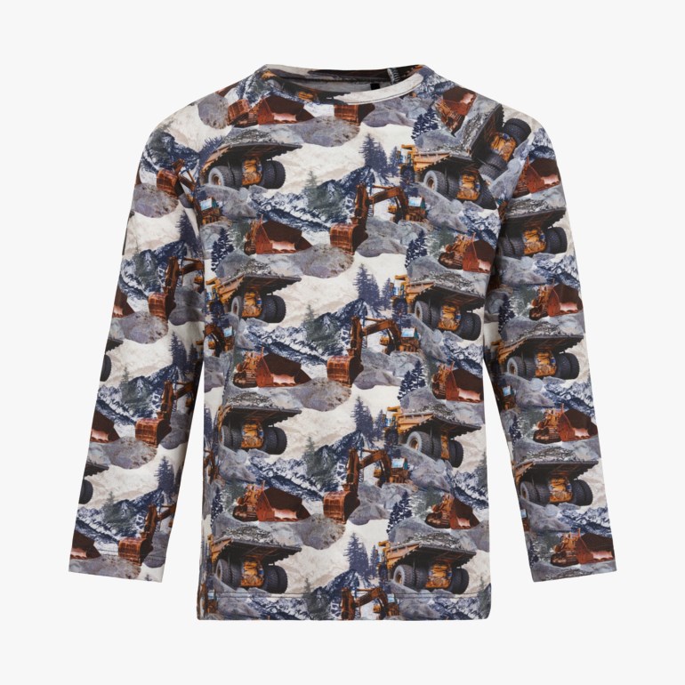 Tøff genser med all over print av en dumper. Fås i str. 92-128. 95 prosent bomull og 5 prosent elastan.