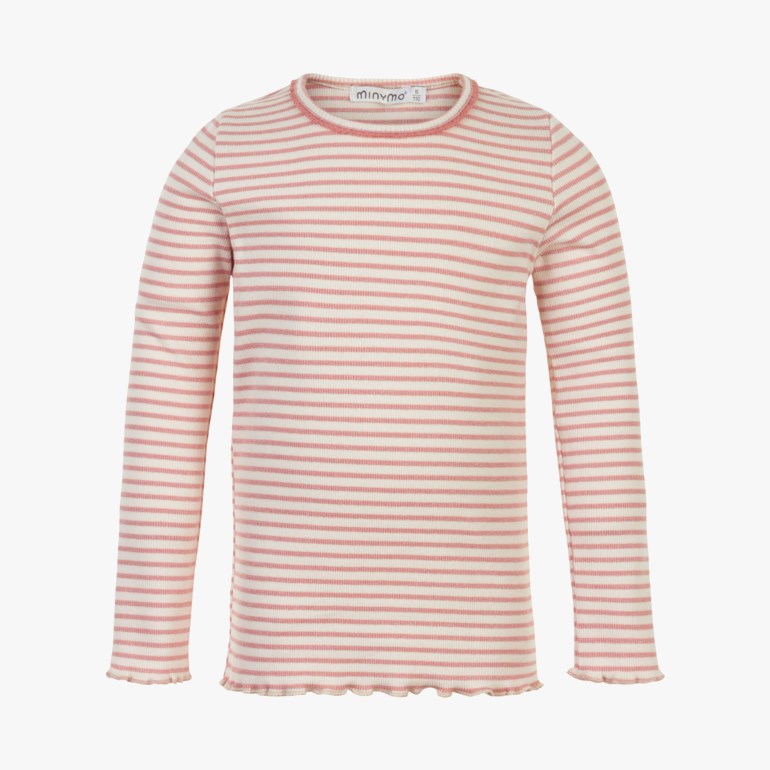 Ribbgenser i en myk kvalitet med rosastriper. 76 prosent bomull, 11 prosent polyester, 6 prosent lurex, 5 prosent elastan, 2 prosent viscose. Str. 92-128