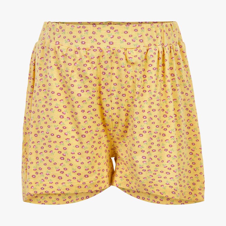 MinymoFantastisk myk shorts i bambusviskose. Lekker gul farge, med småblomstrete rosa mønster.