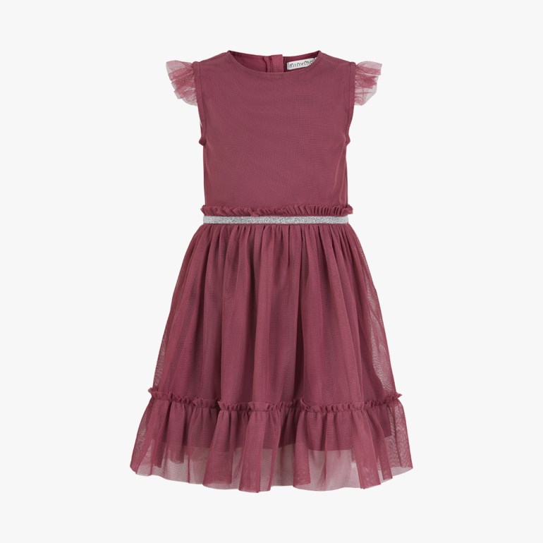 Fantastisk tyllkjole med sølvbånd rundt magen og kappe nederst. Fargen heter crushed berry. 100 % polyester. Hos Barnas Hus finner du penklær til enhver anledning, om det så er bursdag, jul, dåp, selskap, 17. mai eller andre hyggelige sammenkomster.