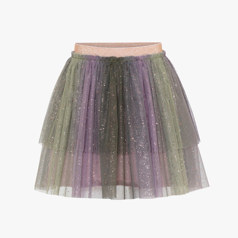 Tyllskjørt med kapper i flere farger og med flotte glitterdetaljer. Skjørtet kommer med en bred glitterstrikk slik at det sitter godt i livet. Laget i 100 prosent polyester.