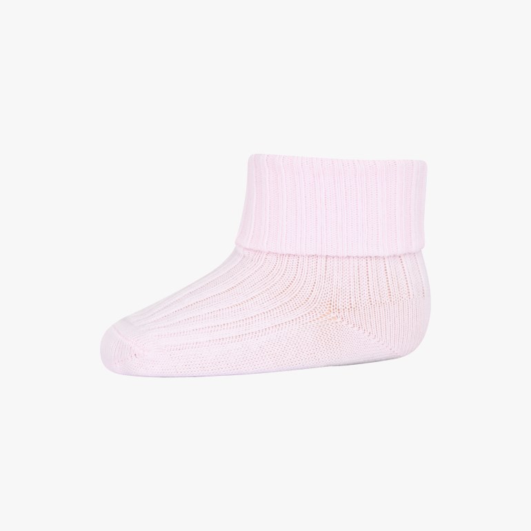 Klassisk ribbestrikket babysokk i Cotton fra mpKids. Sokkene er strikket i en myk bomullskvalitet. For å sikre at sokkene har best mulig passform, har de en anatomisk korrekt hæl med 90° vinkel og en fold-over mansjett ved ankelen.