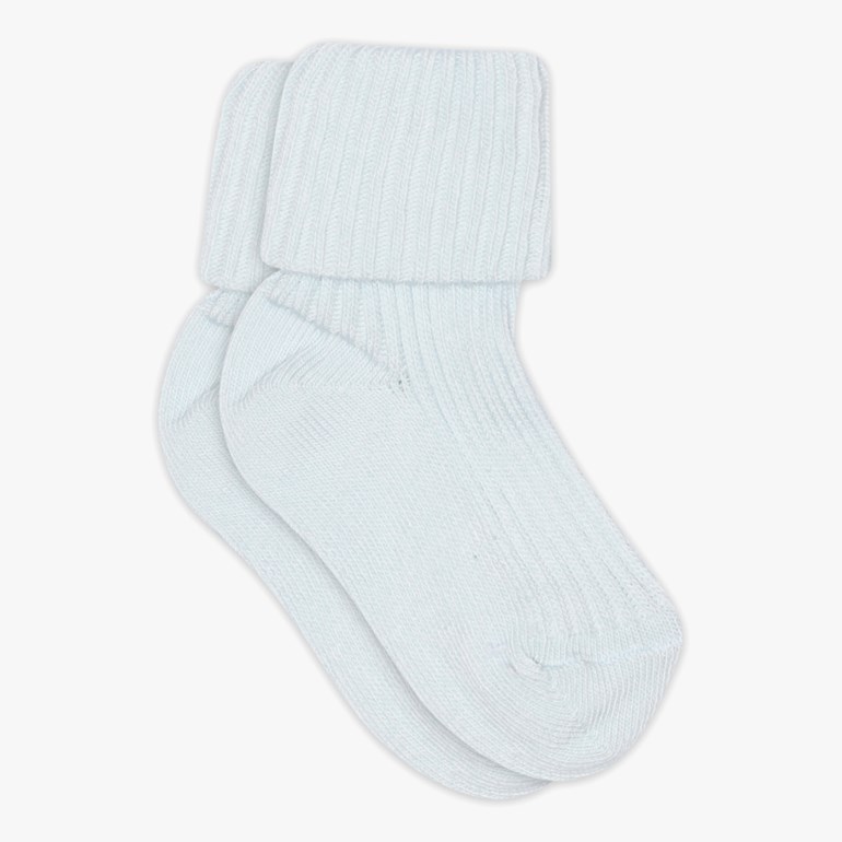 Klassisk ribbestrikket babysokk i Cotton fra mpKids. Sokkene er strikket i en myk bomullskvalitet. For å sikre at sokkene har best mulig passform, har de en anatomisk korrekt hæl med 90° vinkel og en fold-over mansjett ved ankelen.
