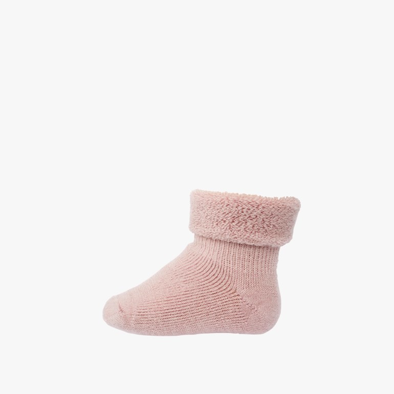 Basic babysokk i 80% superwash ullfrotte. Laget for å være vanskelig å sparke av. Finnes i offwhite, beige, lys rosa og mørk grå. Str 15-22.