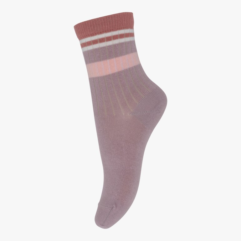 Søte sokker med bred stripe i forskjellige farger. Forsterket hæl og tå for god slitestyrke og en myk og glatt søm på innsiden av tåen for komfort.