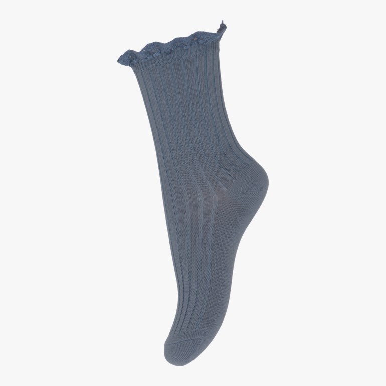 Julia sokk i ribb med en søt liten blondedetalj. Forsterket hæl og tå for god slitestyrke og en myk og glatt søm på innsiden av tåen for komfort.