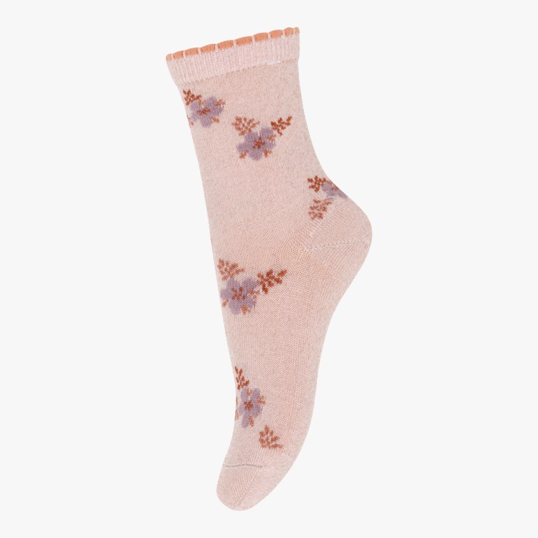 Trendy og varm sokk i superwash ull med tøff glittereffekt, forsterket tå og hæl. Avsluttet med en strikket blondetopp.