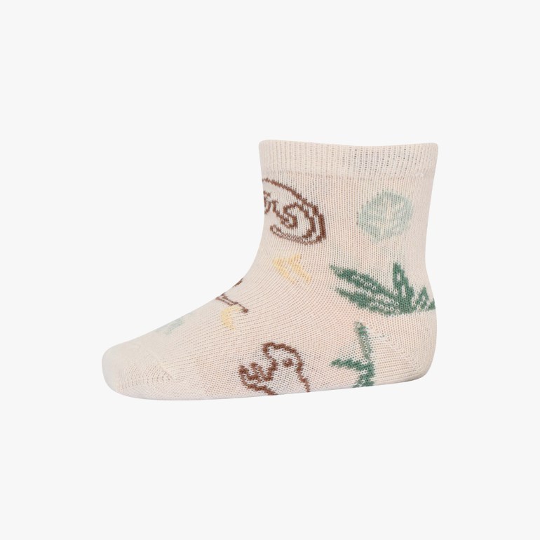 Nydelige og myke viskose-bambussokker fra mpKids dekorert med et morsomt jungelmønster med aper som hopper rundt.