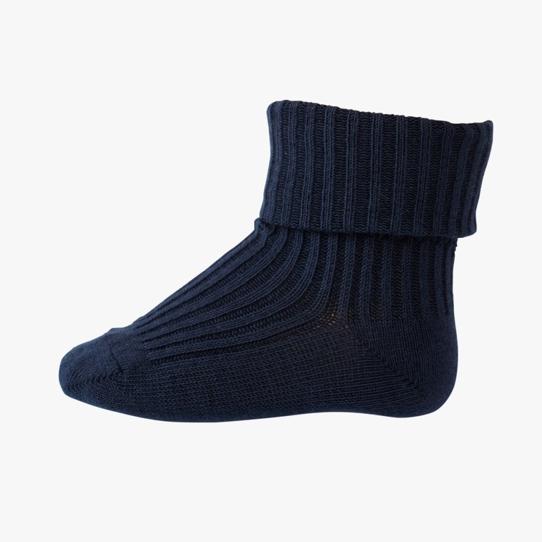 Klassisk, ribbestrikket ankelsokk for de minste. Sokkene har stor brettedetalj og er laget av god kvalitet, myk bomull. God passform, som sitter godt på foten hele dagen.