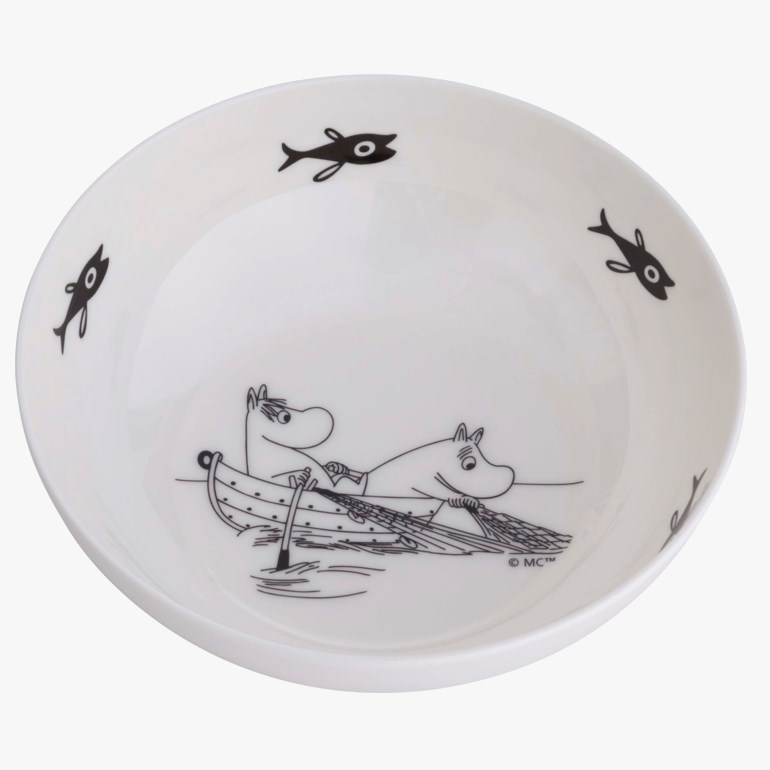 Denne Mumin-skålen er både funksjonell og stilfull, perfekt for små barn. Skålen er laget av ripebestandig melaminplast, noe som gjør den holdbar for daglig bruk. Med sitt vakre design i svart-hvitt og pastellfarger, gjenspeiler den Mumin-familiens lek i det nordiske skjærgårdsmiljøet, slik forfatteren og illustratøren Tove Jansson elsket å skildre det.