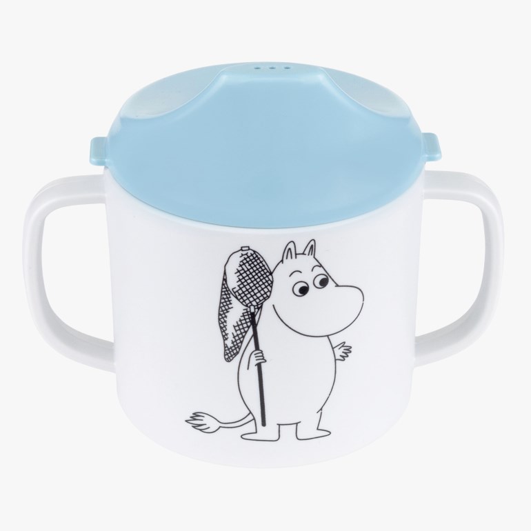 Denne praktiske tutekoppen med Mummimotiv gjør overgangen fra flaske til kopp enkel og trygg for barnet. Den har to håndtak som gir godt grep for små hender, og et lokk som sitter godt på plass med hjelp av en silikonring. Inni tuten er det en ventil som begrenser væskeflyten – perfekt for å unngå søl i starten.