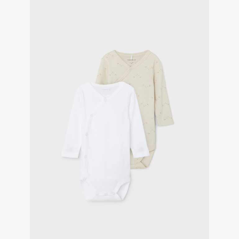 Våre søte omslagsbodyer har en funksjonell trykknappfeste fra topp til bunn for enklere bleieskift og påkledning av barnet ditt. Ta en titt på den herlige kombinasjonen av en trykt og ensfarget stil og velg riktig størrelse.