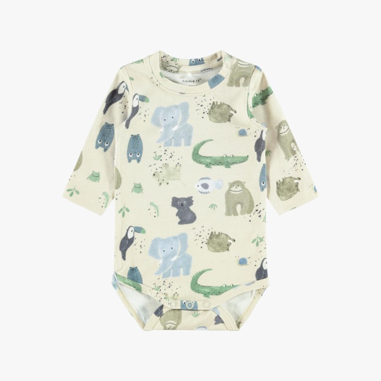 Name It Bifish langermet body med print. 57% Organisk Bomull, 38% Modal og 5% Elastan.