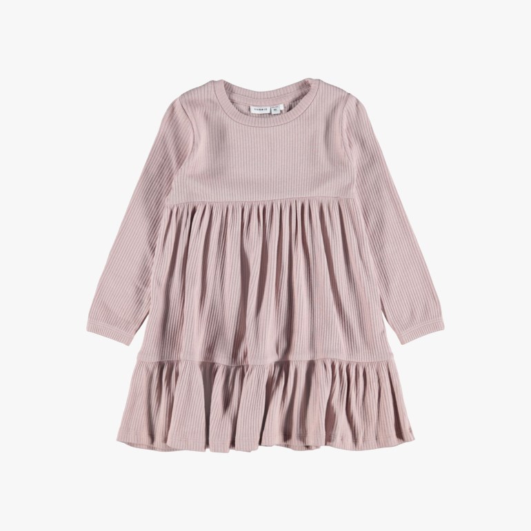 Supersøt kjole i ribbstrikket stoff. 57% Organisk bomull. 38 % Modal. 5 % Elastane.