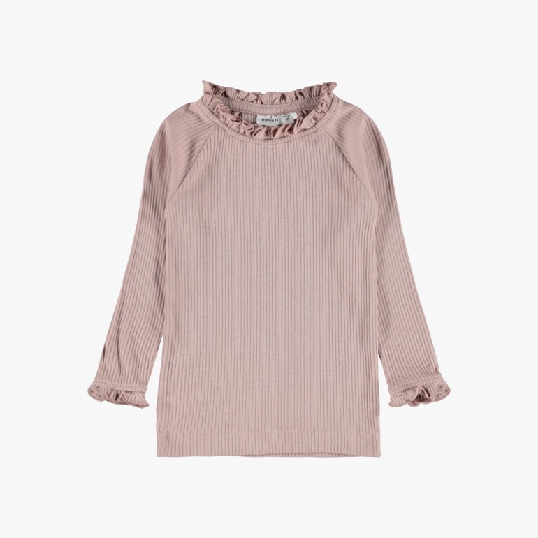 Ribbet topp med frynsedetaljer fra Name-it. Materialer: 57% organisk bomull, 38% Modal, 5% Elastan.
