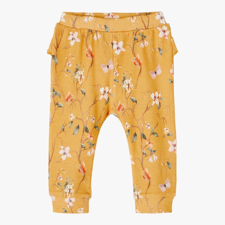 Name It Fiola bukse med rysjer bak. 57% Organisk Bomull, 38% Modal og 5% Elastan.