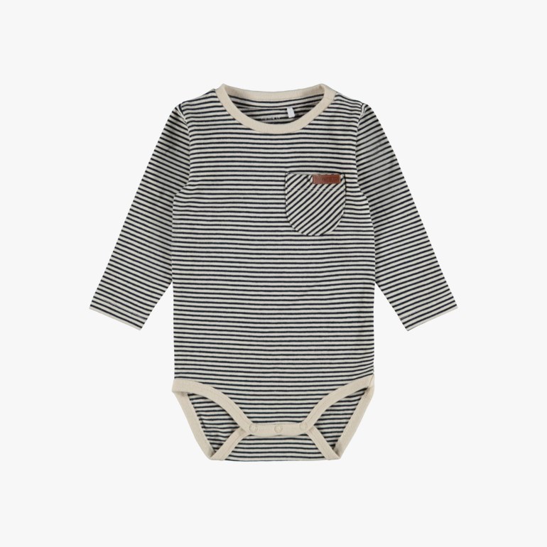 Flott langermet body fra Name It. Bodyen er i 95% Bomull, 5% Elastan.