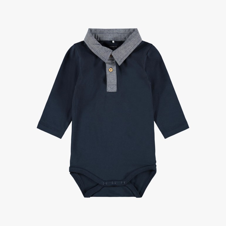 Name It Fiton langermet skjortebody. 95% organisk bomull og 5% elastan.