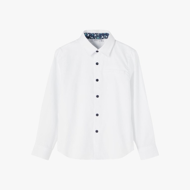 Langermet skjorte med krage. Rund hals og normal passform. Dette produktet er laget av økologisk bomull. Økologisk bomull dyrkes uten bruk av skadelige kjemikalier og denne type dyrking beskytter naturressurser og bønder.