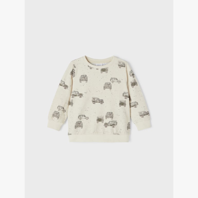 Genser fra Name It, med tøft trykk av ulike biler og kjøretøy. O-hals og ribb i armer og langs kanten.