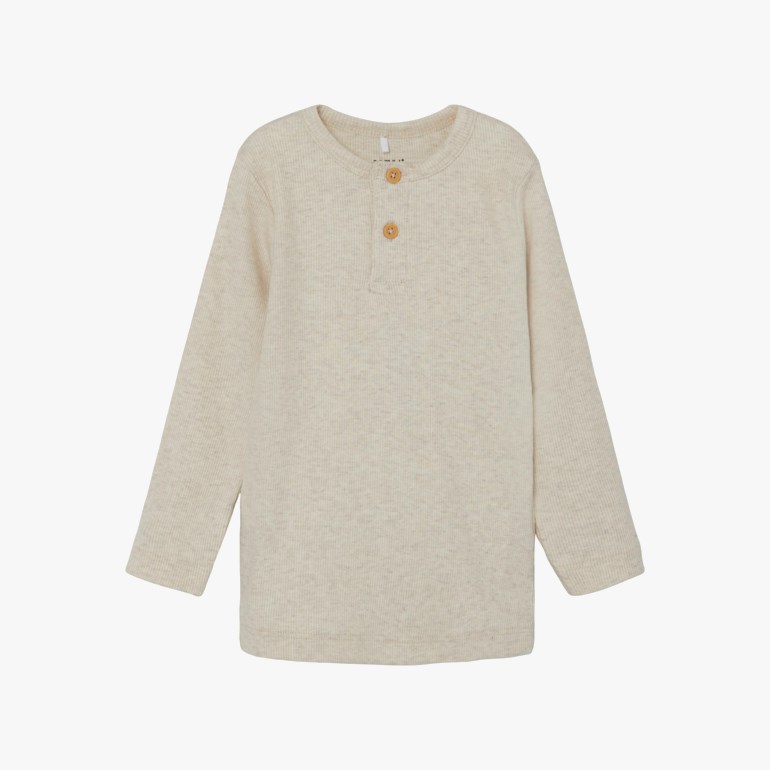 Langermet ribbet genser med normal passform og Crew neck. Laget av økologisk bomull og med knappelukking foran.