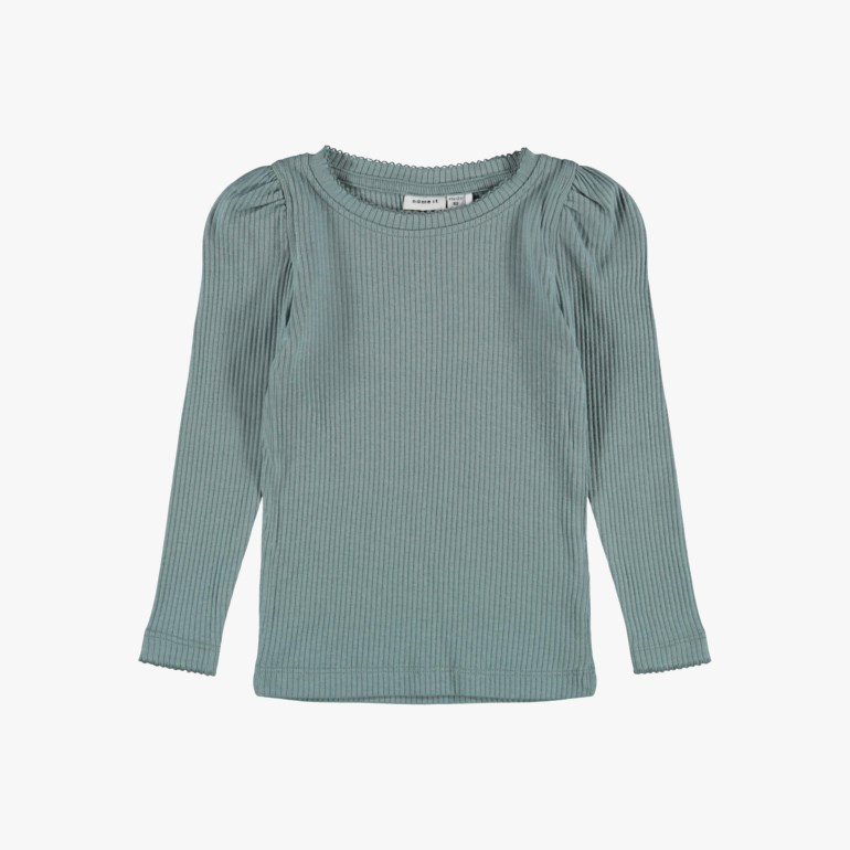 Ribbet topp med puffermer i myk bomull- og modalblanding. Smal passform og med rund hals.
