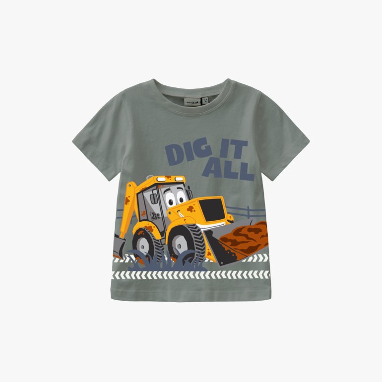 Maarten t-skjorte fra Name It, med tøff print av gravemaskin. Dette produktet er laget av økologisk bomull. Økologisk bomull dyrkes uten bruk av skadelige kjemikalier og denne typen dyrking er med å beskytte naturressurser og bønder.