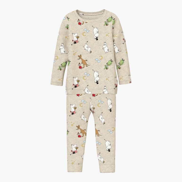 Et mykt og behagelig nattsett i elastisk jerseykvalitet som gjør leggetiden ekstra hyggelig. Stoffet er lett og pustende, med en myk overflate som føles deilig mot huden. Nattsettet har et lekent print over hele og elastisk linning i buksen for komfort gjennom hele natten. Perfekt for både søvn og rolige morgener.
