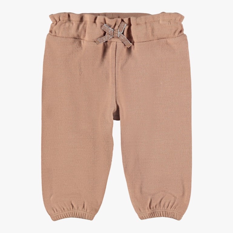 Fin bukse i myk viskose, med strikk i livet og beina. Bukselinningen er dekorert med en sløyfe med glitter.